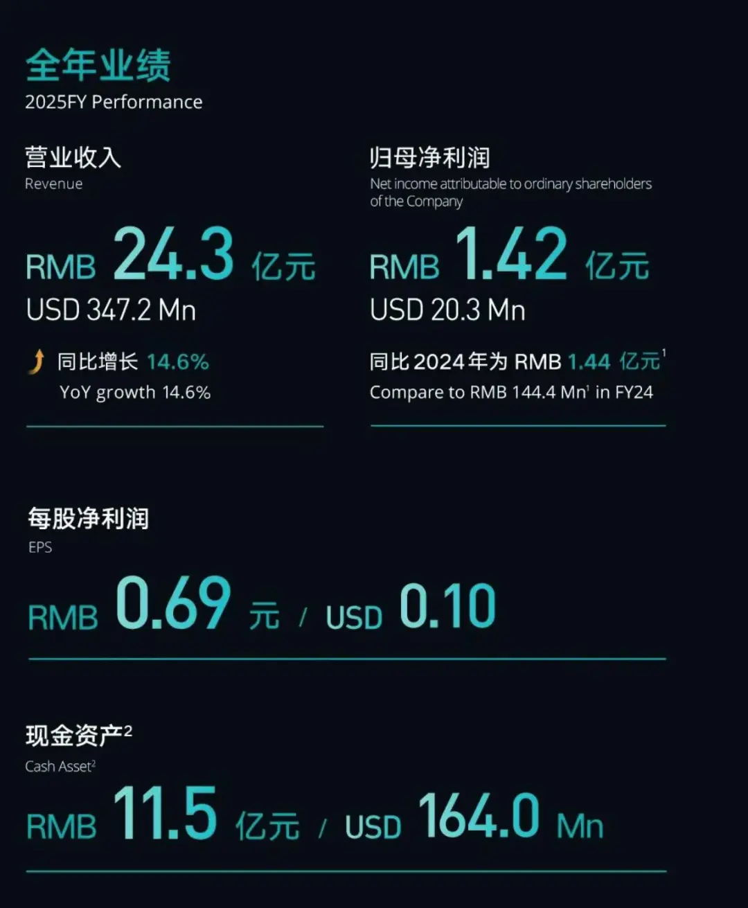 如果要在近年来的智能家电赛道中寻找一个充满戏剧性走向的样本,云米科技无疑是最具代表性的企业之一。刚刚过去的2025年,云米交出了一份堪称“冰火两重天”的财务答卷:全年未经审计的营收达到24.82亿元,同比增长14.6%;但全年净利润却同比微降1.9%,录得1.42亿元。