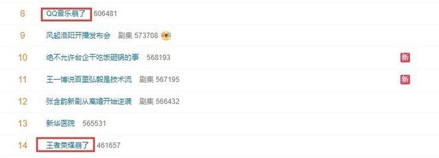 今天中午,“王者荣耀崩了”冲上热搜,然而不止于此,还有用户反馈QQ音乐也崩了。