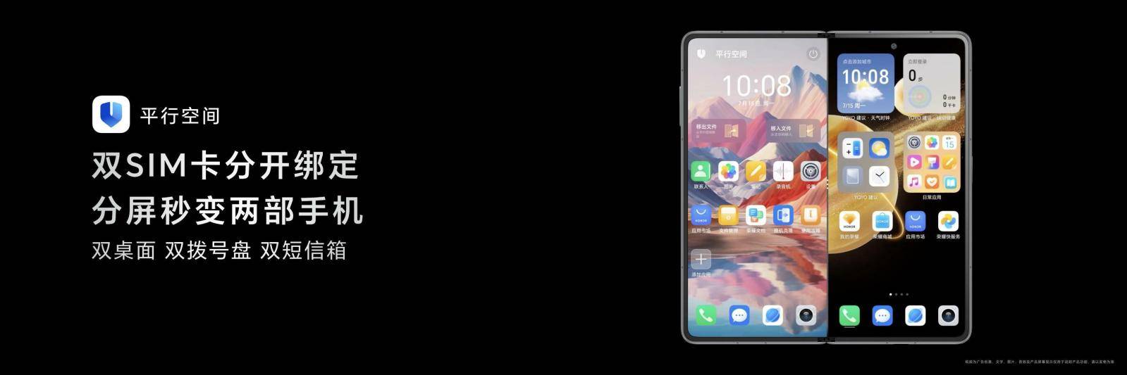 在分屏管理与设备互联方面,荣耀MagicOS 8.0.1也表现得更为出色。全新平行空间双系统支持工作、生活空间绑定专属SIM卡号码,联系人、通话记录完全隔离,秒变两部手机。同时,其平行空间内权限管控升级也确保使用痕迹不被泄露,工作时更专注与安心,生活时更享受。此外,荣耀信任环能力也得到演进,充分利用折叠大屏优势,首次支持一屏操作两机,双端可控,快速触达两部手机中全部应用和服务、文件一拖分享,打破了传统双机物理设备边界。