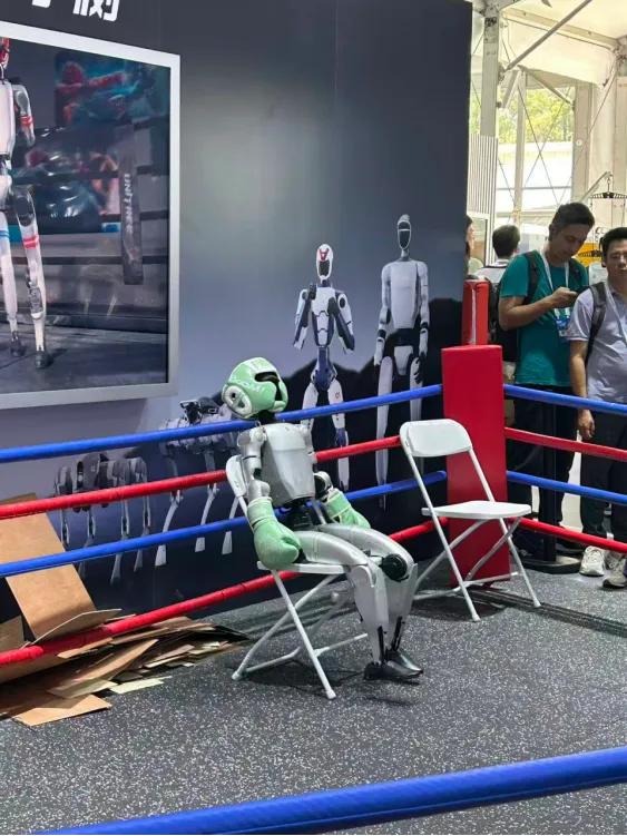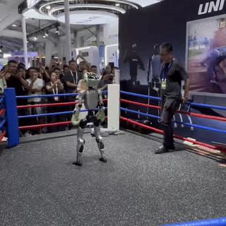 机器人则更加霸气,带着拳套,现场展示一拳挥断木板,以及展示躺下再利索地站起来,整个过程动作非常丝滑,赢得观众声声称赞。