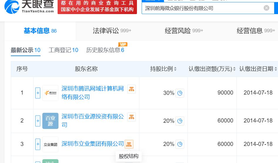 据天眼查APP显示,2024年上半年,大股东减持了微众银行8454万股股份。