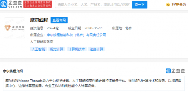 企查查信息显示,摩尔线程致力于为视觉计算,人工智能和高性能计算打造最佳平台,其公司成立于2020年,法定代表人为刘姗姗,经营范围包含:自然科学研究与试验发展;工程和技术研究与试验发展;农业科学研究与试验发展;医学研究与试验发展等。