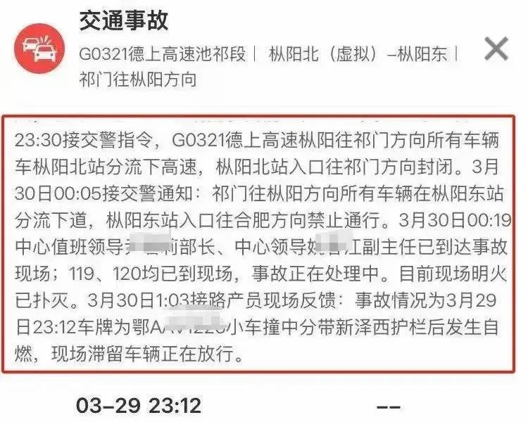 3月29日晚,一辆小米SU7标准版在德上高速公路池祁段发生严重交通事故,导致车辆起火燃烧,造成3人死亡。