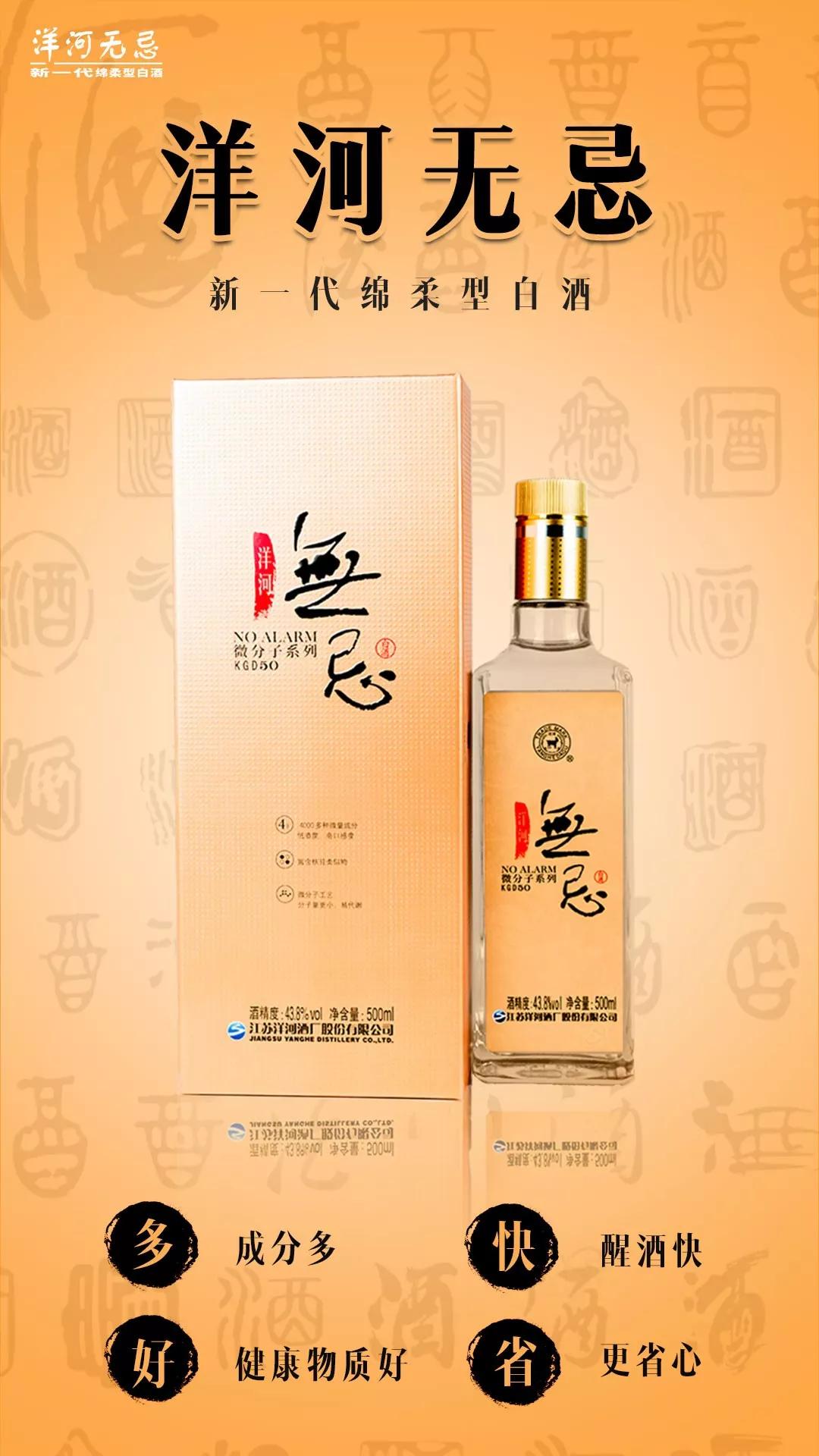 因此,洋河无忌酒质富含4000多种微量成分,使酒的味感更复合,口感更绵柔;大量小分子物质,让身体更容易代谢,不容易醉;40度的酒度,50度的口感,30度的酒后体验。新绵柔·醒酒快,洋河无忌完全符合健康趋势。