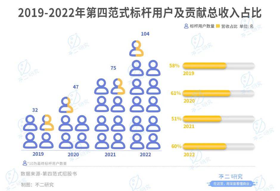 同期,第四范式分別服务32名、47名、75名及104名标杆用戶;标杆用户收入分別贡献总收入的58%、61%、51%及60%。四年内,标杆用户的营收占比过半。