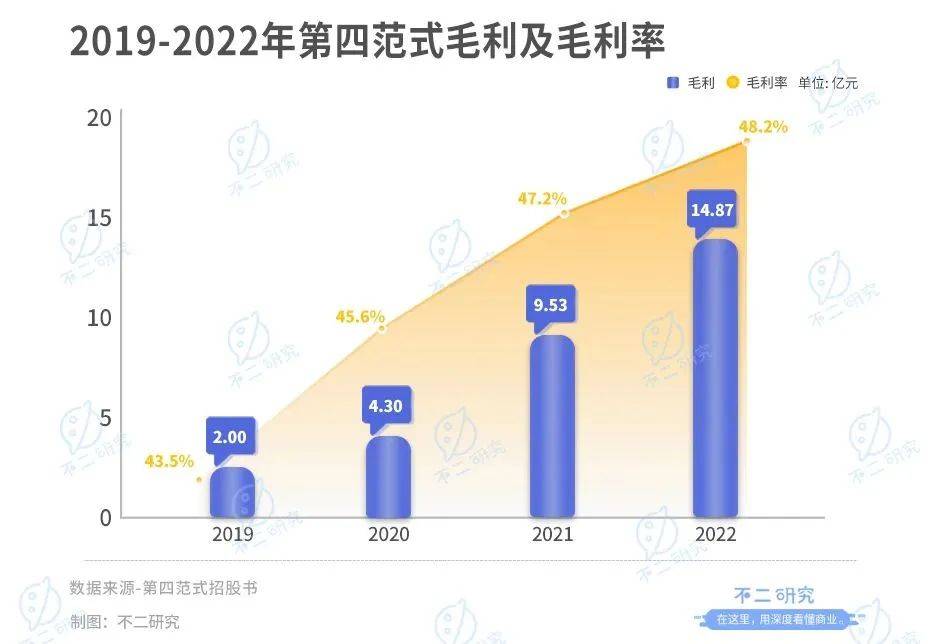 2019年-2022年,其营收分别为4.60亿元、9.42亿元、20.18亿元、30.83亿元;同期的毛利分别为2.00亿元、4.30亿元、9.53亿元、14.87亿元。