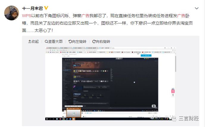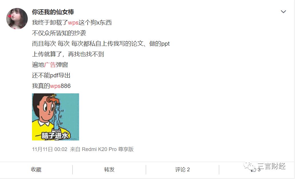 但大量用户吐槽,是WPS已经触及到了用户的底线,赚钱可以有,用户也不能当成狗。