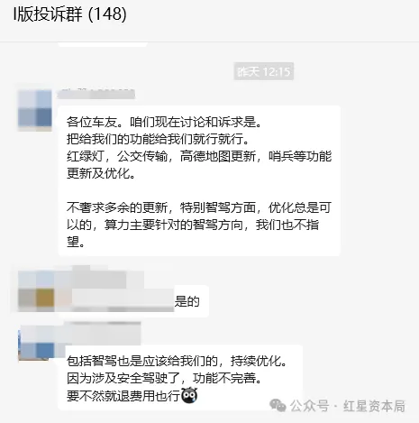 郝先生表示,车主们的诉求并不高,“我们也不奢求跟深蓝汽车的华为智驾版看齐,只需要跟普通版看齐就行。”