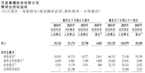 与此同时,百度的研发投入正在压缩:2025年全年研发费用204亿元,同比减少8%。在需要“烧钱”抢跑的AI赛道,这个信号值得警惕。