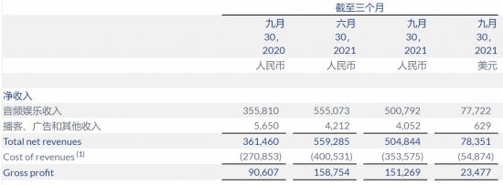 据财报数据显示,截至9月3日,荔枝的季度营收达到5.05亿元人民币,同比增长40%,今年前三季度收入总和已超过2020年全年。第三季度毛利为1.51亿元,较上年同期的9060万元增长67%,得益于运营策略的优化,荔枝第三季度毛利率提升至30%,上年同期为25%。此外,第三季度荔枝音频娱乐业务平均月活跃用户数同比增长21%至917万。