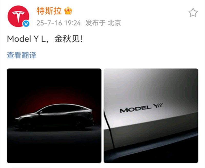 【TechWeb】7月17日消息,昨日晚间,特斯拉通过官方微博宣布“Model Y L,金秋见!”,有消息称这是正式预告加长版Model Y即将到来。