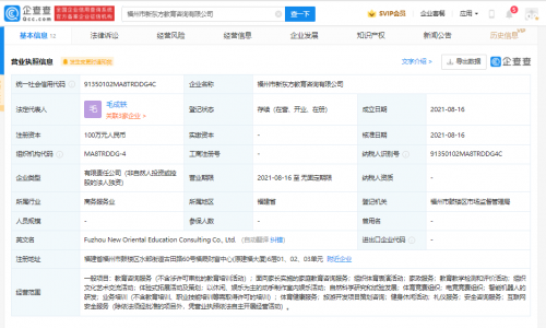 新东方于福州成立新公司,经营范围含家政服务等快报