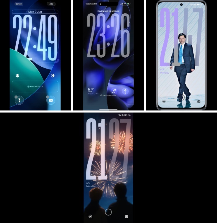 苹果全新的锁屏时钟设计采用了拉长字体和可自定义布局,与澎湃 OS 首次发布时推出的设计极为相似。这一举措凸显了苹果愿意采用已在其他市场消费者中引起共鸣的视觉设计趋势。