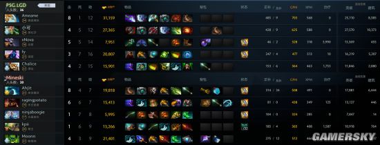 前期,PSG.LGD因为阵容的局限性只能分散打钱猥琐发育,而Mineski通过抱团推进掌握了场上的主动权,PSG.LGD则显得有些狼狈。