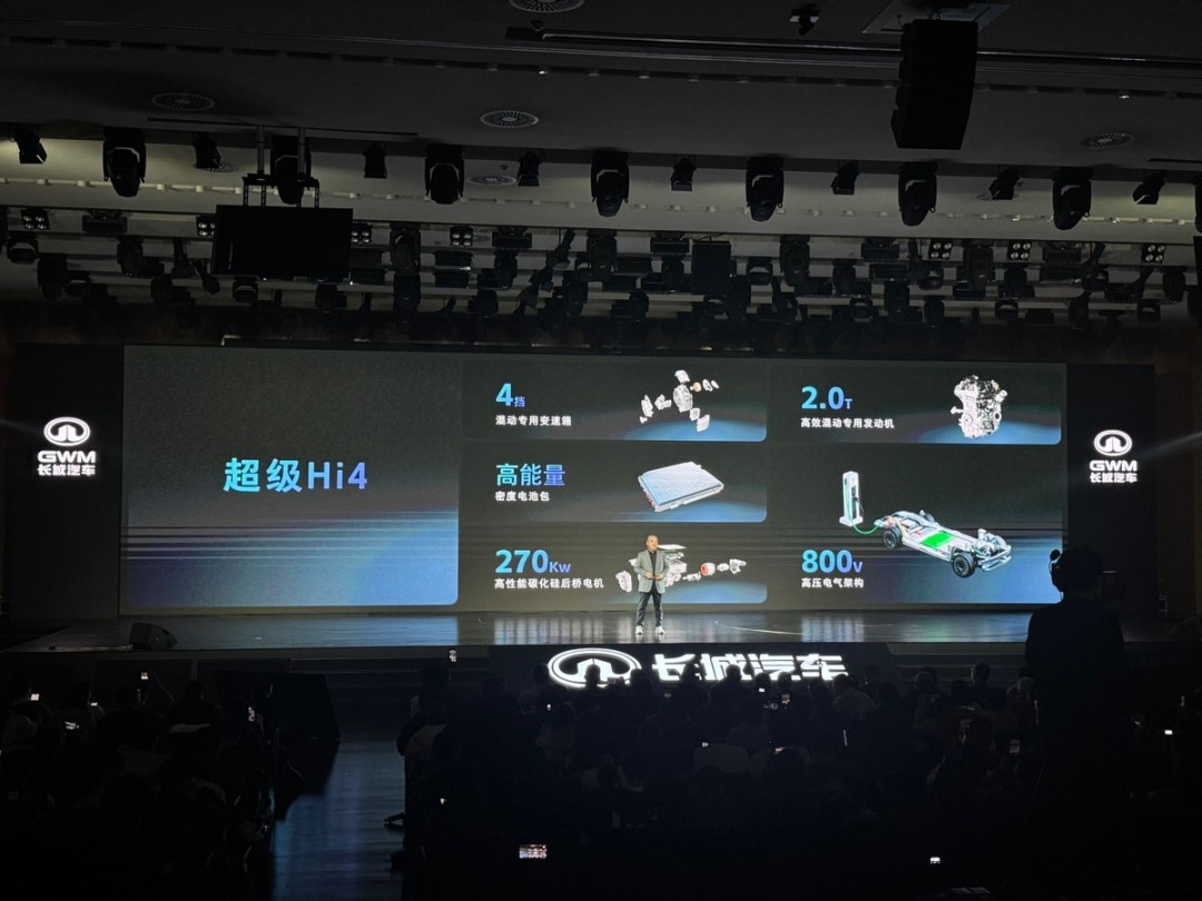 PHEV 形式搭载超级 Hi4-PHEV 系统,采用 4 挡混动专用变速箱、2.0T 高效混动专用发动机、800V 高压电气架构、高能量密度电池包、270kW 高性能碳化硅电机。