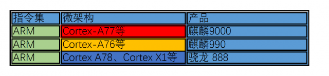 注:现在手机CPU大多采用多核心设计,同一CPU内不同核心可使用不同的微架构。