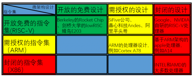 *红色格子代表封闭模式,给钱基本也不给你用,只能购买其最终的芯片产品或者搭载相应芯片的设备。