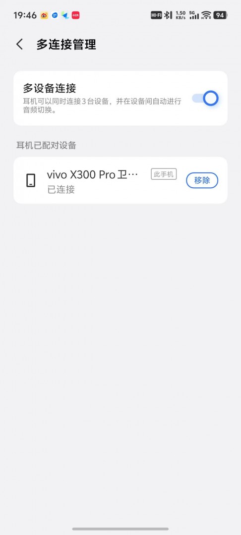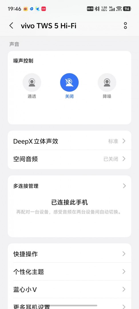 vivo TWS5 Hi-Fi版首次支持三设备连接管理,可同时连接手机、平板、电脑三台设备,实现"谁出声就切到谁"的智能切换。对于同时使用多台设备的用户来说,这无疑大大提升了使用效率。