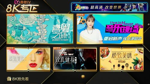 据悉,在高分辨率、高码率、高帧率标准下,突破传输、解码等多项技术难点,只为给用户呈现更佳的视觉效果,8K专区将每月更新15-20小时,为用户提供200小时以上真8K节目,涵盖纪录片、演唱会、美食、健身、美妆等垂类内容,可以满足不同用户的家庭沉浸感观看需求。健身类及美食类还会根据不同用户喜好和习惯,以及大屏用户的客厅应用场景,持续提供可供更新的系列化精品内容。
