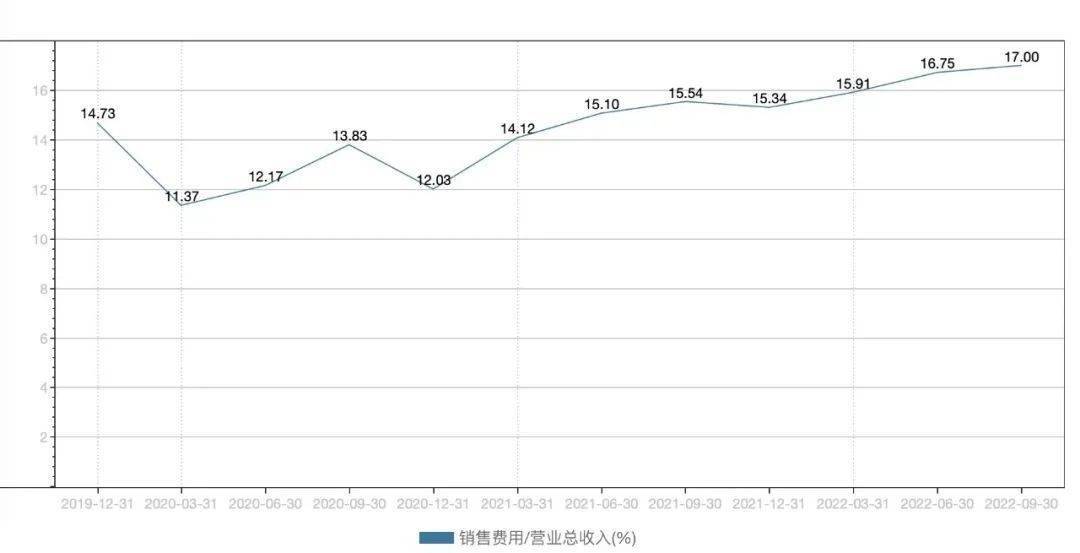 前三季度,小熊销售费用率达到17%,为近年来高点。而新宝股份、苏泊尔和九阳的销售费用率为2.98%、10.88%和14.72%。