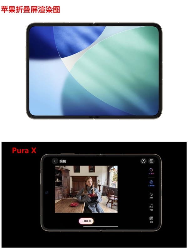 苹果首款折叠屏iPhone渲染图曝光,外观神似华为Pura X快讯