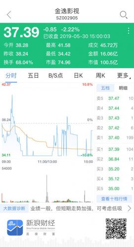 2018净利润暴跌40% 金逸影视却四连板股价翻3倍快报