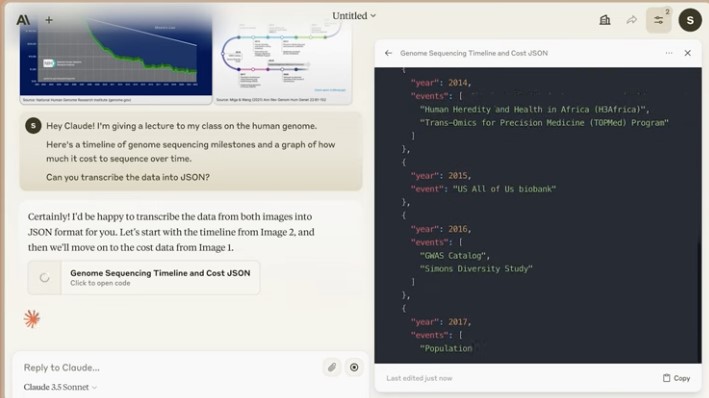 Claude 3.5 Sonnet 还可以用于自动化视觉数据处理任务,提取有价值的信息,增强医疗保健、金融服务、媒体和娱乐工作负载中的数据分析。
