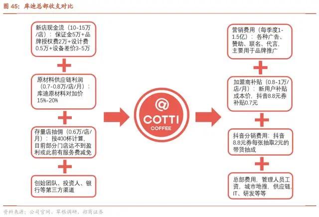 公开资料显示,库迪的收入途径主要是以下三个,即加盟费中价格高昂的柜体和设备差价、每周联营商预订的物料利润以及联营商的分成。