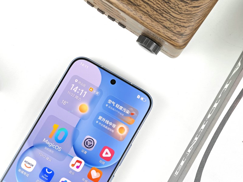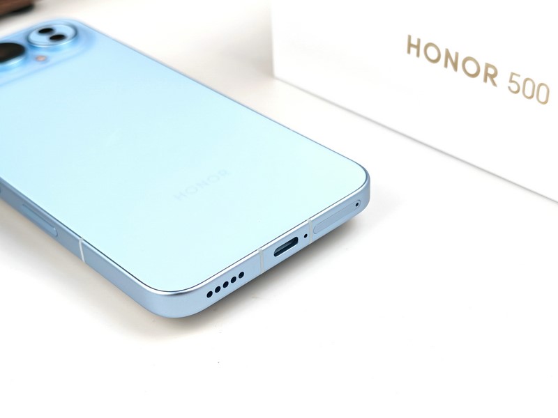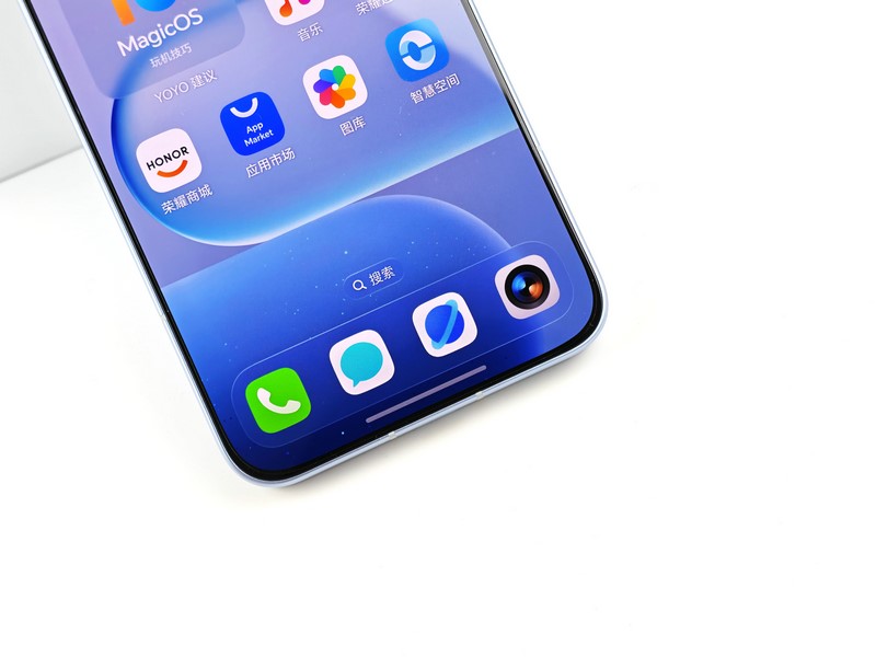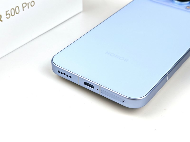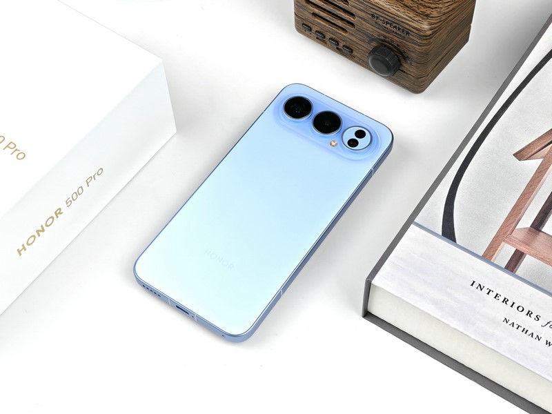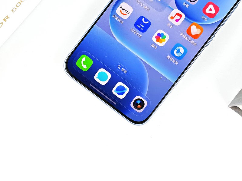在配色方面,荣耀500 Pro提供了四款水晶灵感配色:海蓝宝、星光粉、月光银和曜石黑,每种配色都蕴含着独特的寓意和设计灵感,不仅满足了不同用户的审美需求,更让手机成为了一种时尚配饰。此次笔者拿到的是其中的海蓝宝配色版本。这款“海蓝宝”智慧水晶配色灵感源自深海与海蓝宝石的能量共振,通透蓝调背板在不同光线下展现出独特的光泽和质感。