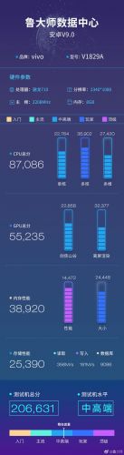 根据鲁大师显示的信息,vivo X27将采用无刘海显示屏,分辨率为2340×1080,屏幕纵横比为19.5:9,搭载高通骁龙710移动平台,配备8GB内存+256GB存储,运行Android 9.0系统,综合跑分为206631分。