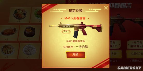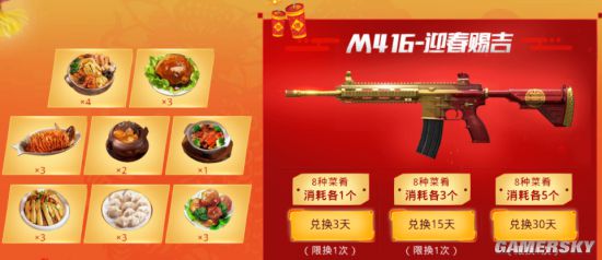 即玩家只需要选择赠送和交换就可以获得,但是M416皮肤兑换却是需要消耗掉玩家已获取的菜肴数量,获得的菜肴种类是随机的。