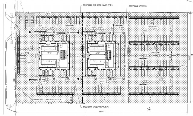 从文件中可以看到,GPD Group Inc. 公司负责该项目的施工,并且该场地规划中还包含最多 4 个兆瓦级电池储能装置 (Megapack),这些装置可能位于配电柜附近。