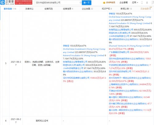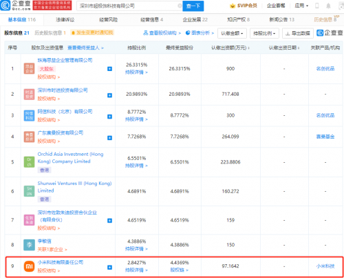 【TechWeb】企查查APP显示,8月27日,深圳市超极饰科技有限公司发生工商变更,新增小米关联公司天津金米投资合伙企业(有限合伙)等多名股东,此前,小米科技有限责任公司已投资该公司,持股2.84%。