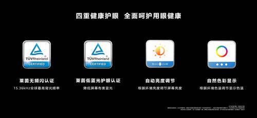 外加上瞬晰动态、精晰图像处理等技术加持,以及HDR Vivid认证、莱茵低蓝光、无频闪认证等技术,能让每位用户在长时间观看视频时,既能看得爽,也能看得健康。