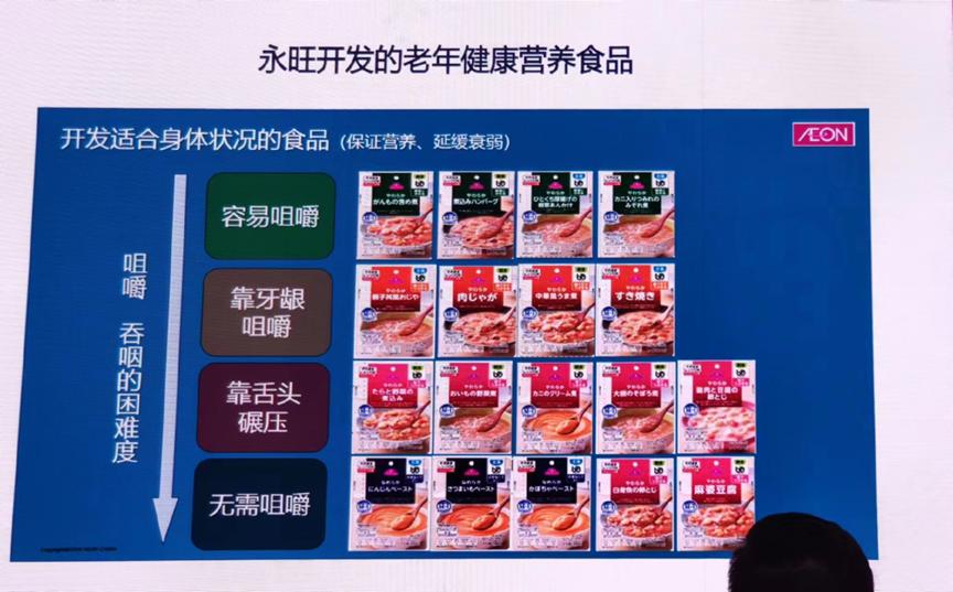 以永旺在日本所做的差异化为例,其专门开发了老年健康营养食品,根据老年人进食时咀嚼、吞咽的困难程度,推出了容易咀嚼、靠牙龈咀嚼、靠舌头碾压、无需咀嚼四类产品,极大地便利了老年人的生活。