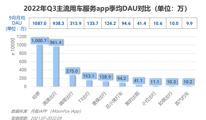 10月25日,移动大数据服务商极光大数据发布《2022年Q3移动互联网行业数据研究报告》显示,哈啰App活跃用户规模跃升至行业的头名,其三季度App季均DAU(日活跃用户数量)破千万,达1000.7万。