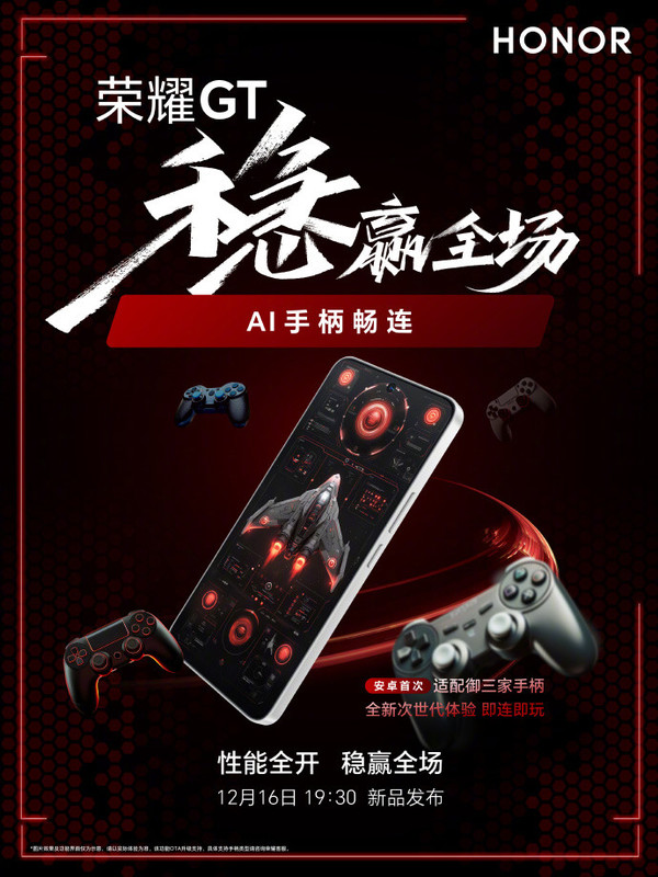 【TechWeb】早在10月31日举行的荣耀Magic 7系列发布会上,荣耀CEO赵明就宣布将成立荣耀GT系列,并在随后不久推出该系列的首款机型,此后有关新机的爆料就开始陆续传出。而日前官方宣布,荣耀将于12月16日举办新品发布会,届时全新的荣耀GT将会正式亮相。现在有最新消息,近日官方进一步晒出了该机的更多卖点细节。