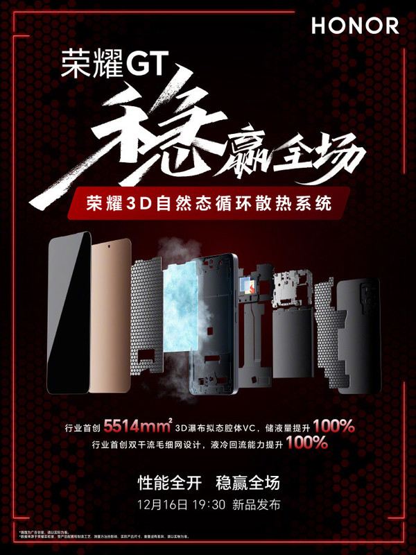 荣耀GT将搭载3D自然态循环散热系统 还支持AI手柄畅连快讯