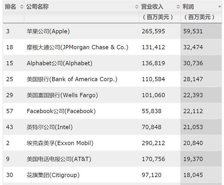 2019《财富》美国500强公布:苹果赚钱最多快报