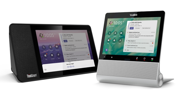 或许是觉得只发软件还不过瘾,微软甚至还拉来了联想和亿联两家公司,打造了Teams专用的视频会议硬件产品。这两款产品看上去就像是配备触摸屏的智能视频音箱一样,但其中搭载了Cortana语音助手。