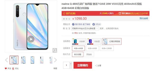 1098元起!realme Q幻境白特别版开启预约:骁龙712+全新幻彩渐变色快报
