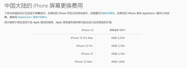 教大家一个省钱小技巧(划掉)。如果你十分开心的购买了一部iPhone 12 Pro Max手机,但是突然有一天手机不小心屏幕摔碎了,想要去Genius Bar 天才吧找里面的天才换一块全新的原装屏幕需要支付2559元,这么一想很是不划算。如果在线申请补购AppleCare +服务只需要支付1798再加上188元的屏幕服务费就可以得到一块全新的原装屏幕了,这样操作的话就足足省了573元。