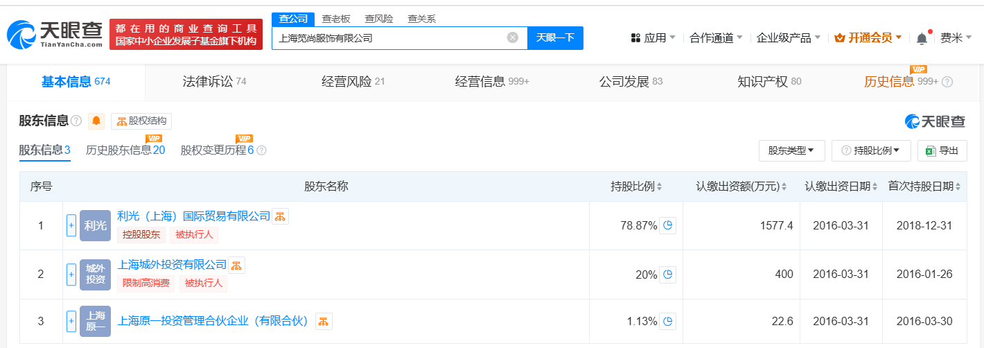 该公司成立于2011年11月,法定代表人为应军阳,注册资本2000万人民币,经营范围包括食品经营、酒类经营、各类工程建设活动、互联网销售、企业管理咨询、图文设计制作等,由利光(上海)国际贸易有限公司、上海城外投资有限公司、上海原一投资管理合伙企业(有限合伙)共同持股。据公开资料,该公司的创始人为张雨绮前夫袁巴元,企业受益股东信息显示,袁巴元最终受益股份约20.9%。