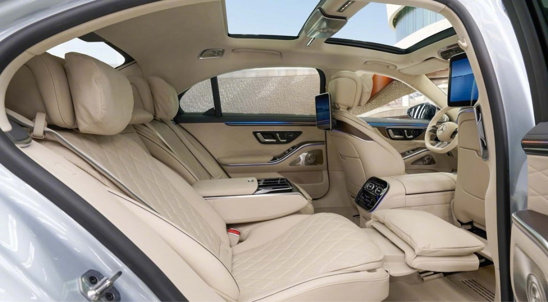 同时,新一代micro-LED数字大灯成为标配,搭载高分辨率芯片,照明范围扩大约40%,可实现600米超远距照明。车尾尾灯组焕新,左右两侧各配备三枚三叉星徽光源,与奔驰E级形成差异化区分。