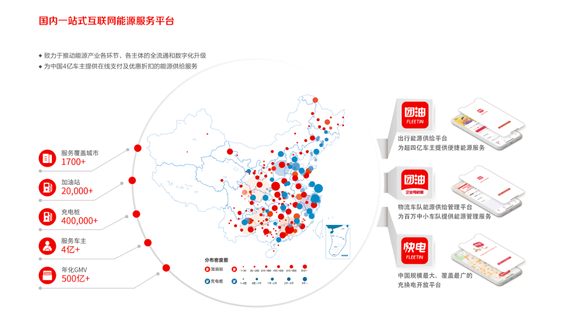 从2016年成立,4年间能链构建起一张覆盖至全国1700余座城市的油电一体化能源数字化服务网络。能链集团旗下团油连接全国2万余座加油站,快电连接40万余根充电桩,覆盖4亿车主。在To B服务方面,其SaaS产品已经服务万家加油站。