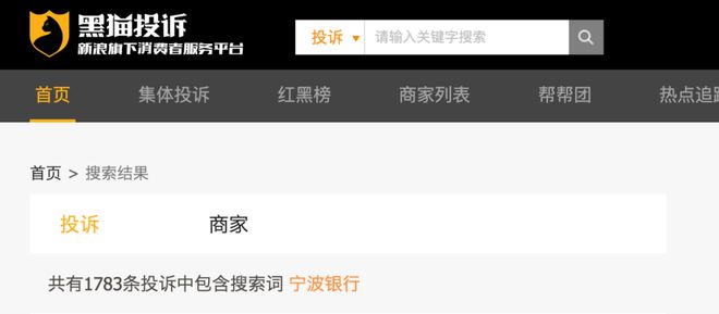 在互联网投诉平台黑猫投诉上,输入关键词“宁波银行”,可搜索到1783条投诉,输入“宁波银行 催收”,可搜索到128条投诉。
