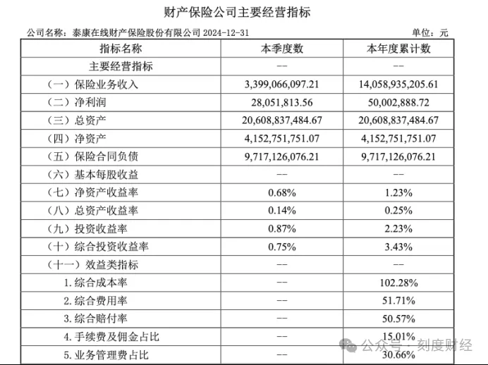 财务表现波动显著,2024年净利润仅5000.29万元,同比下滑超三成,受综合成本率102.28%等因素拖累。