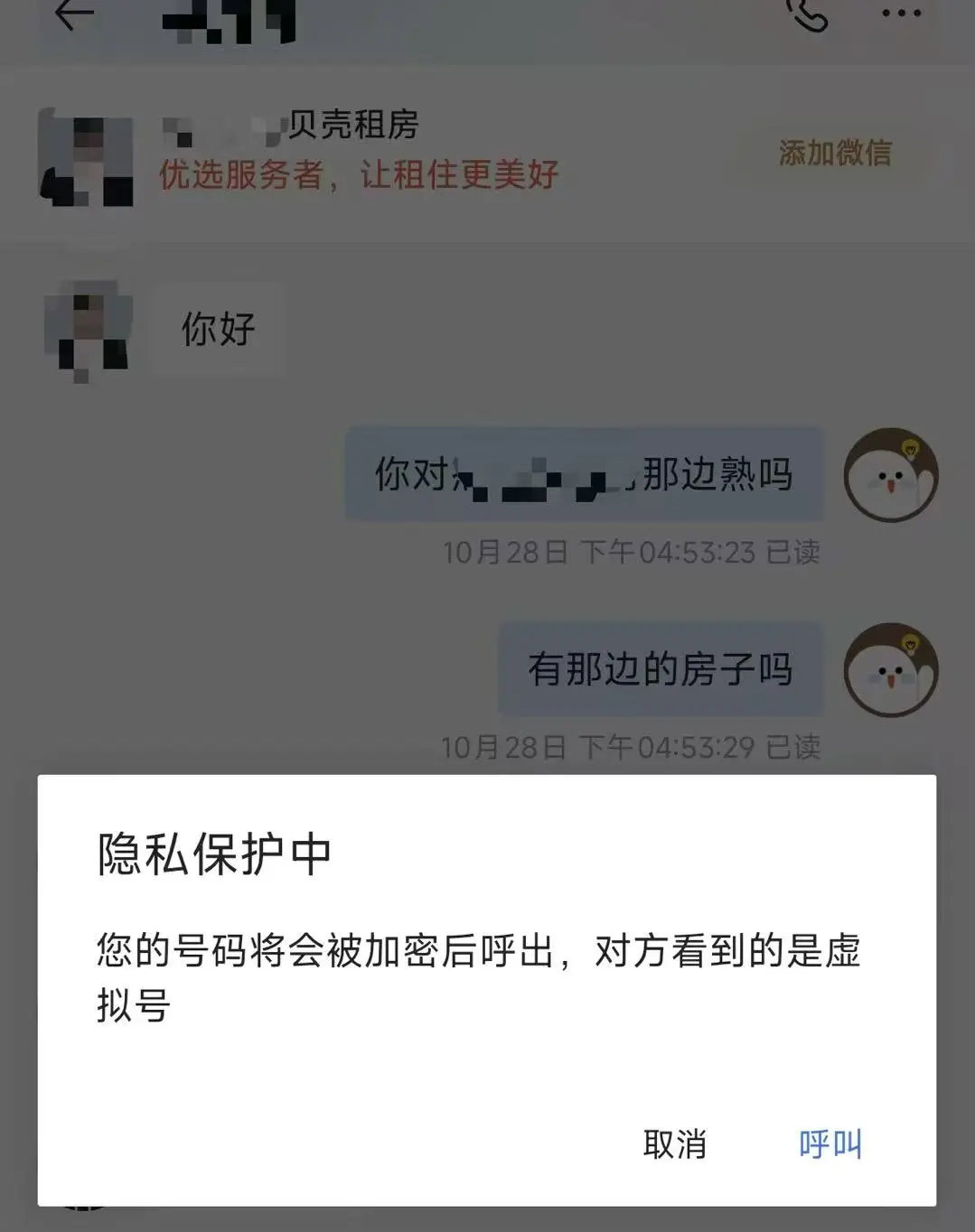 “我明明用的是虚拟号码给中介打的电话,他们是怎么知道我的真实号码?”周先生告诉记者,10月下旬,他通过贝壳找房APP寻找杭州的房源,看到一个比较心仪的房子后,他使用虚拟号码联系中介了解情况。最终,综合多种因素,他并未选择该房源。