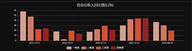 虽然数据仍然非常漂亮,但从单季度增速看,实际正在不断减速。尤其从单季度看,2025年的单季营收同比增速一季度到三季度分别为36.91%、30.41%、19.88%。扣非净利润同比增速为39.36%、15.88%、-2.92%。