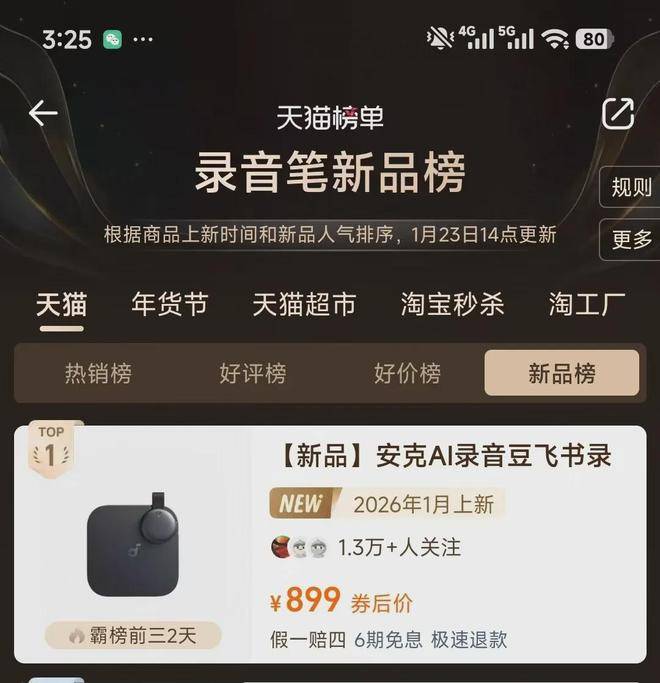 近日又有一个爆红的电子产品上市,各大科技媒体争相报道,电商端的热度也很猛。它就是安克和飞书在2026年1月19日联手推出的AI录音豆。